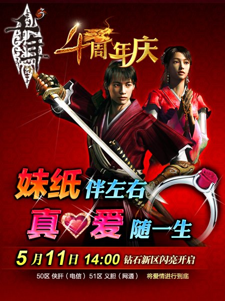 动情时刻,不在犹豫,男儿当豪气,大声说出你的心声。50区侠肝(电信) 51区义胆(网通)等着你的到来,将爱情进行到底吧!